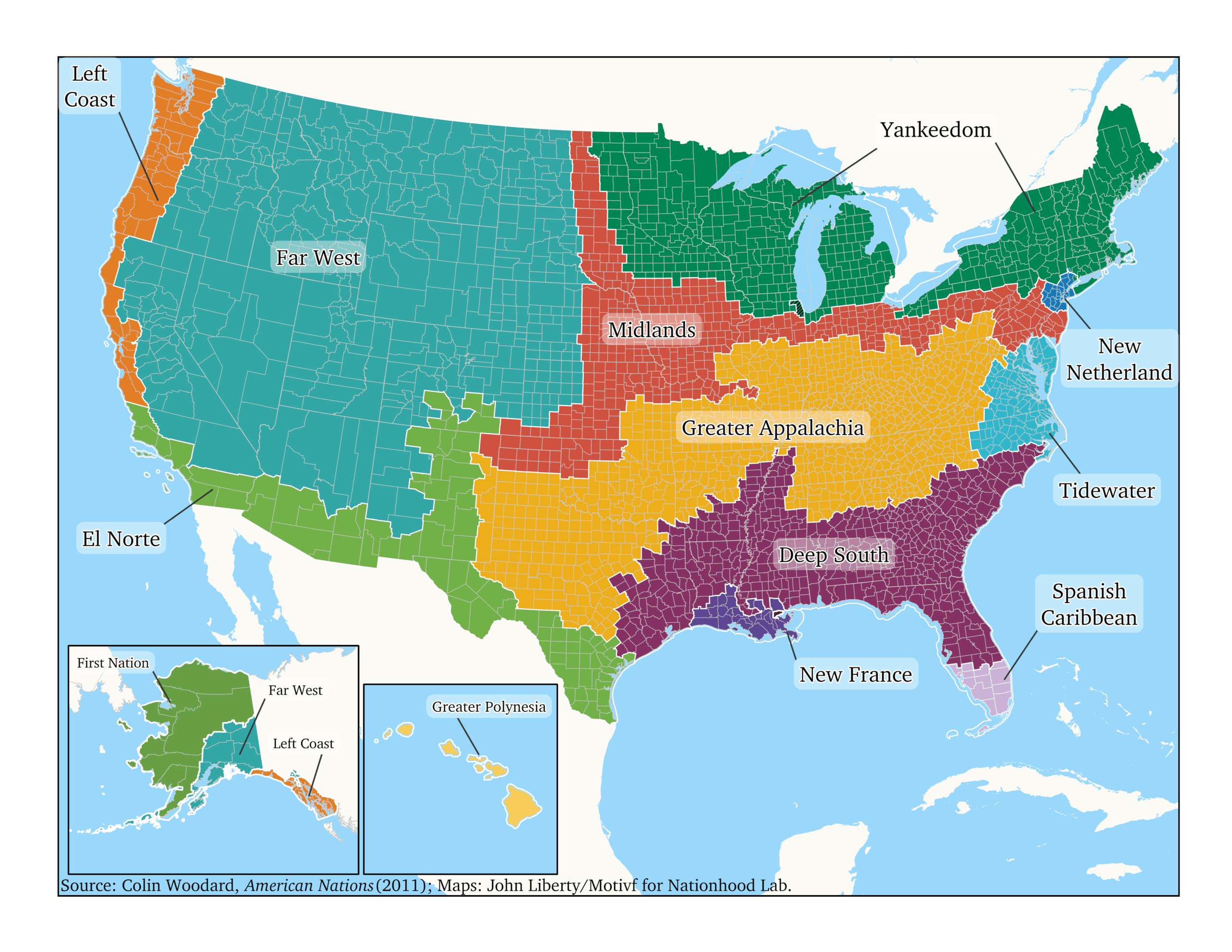 - Colin Woodard: American Nations. A History of the Eleven Rival Regional Cultures of North America, New York 2012.